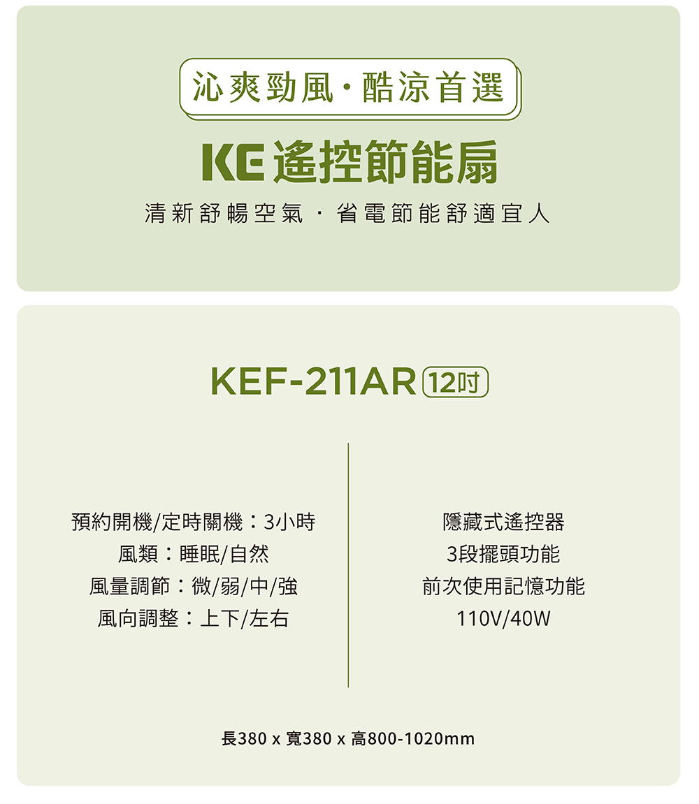 KEF211AR 12吋遙控風扇
